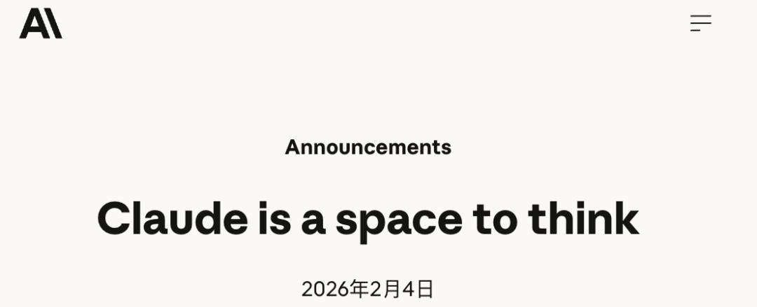 配合超级碗的广告攻势,Anthropic还在自家博客上发布长文:为了给用户保留一个思考的净土,Claude将保持无广告: