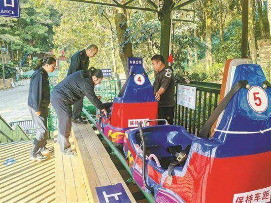 海沧区市场监管局开启春节全链条护航模式,为吃住行游购娱筑牢安全防线。图为执法人员对天竺山森林公园特种设备“丛林飞车”开展节前检查。